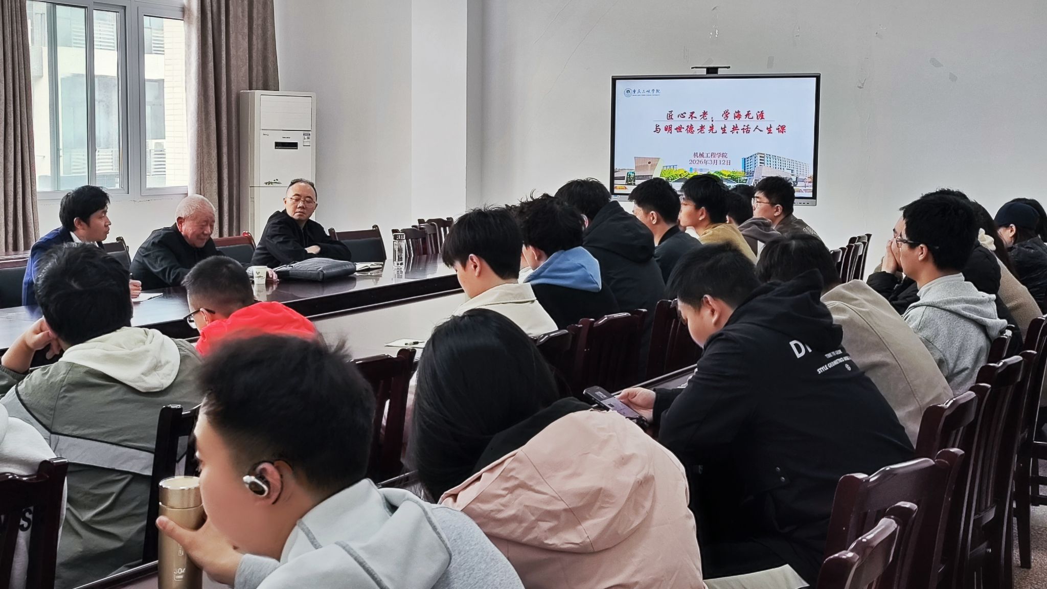 为弘扬工匠精神、涵养优良研风,引领青年学子树立终身学习意识、筑牢实干担当根基,3月12日机械工程学院特邀九旬资深机械行业前辈明世德老先生进行研究生座谈交流。全院研究生怀揣崇敬之情齐聚现场,聆听老先生跨越半世纪的奋斗征程,汲取治学修身、立业报国的人生养分。